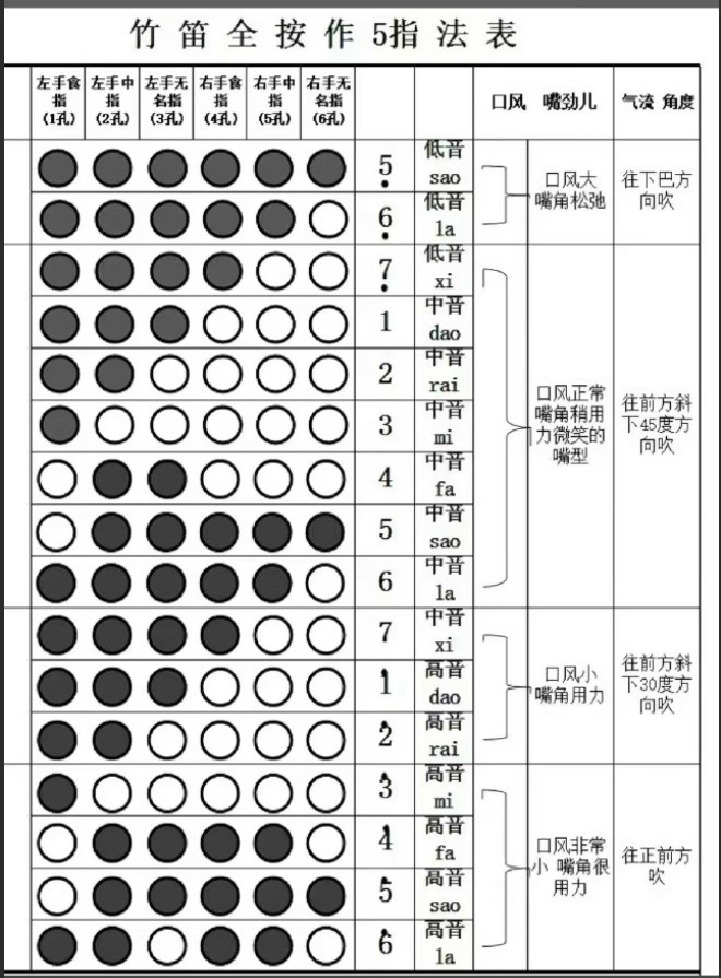 竹笛基本上都是按照筒音声当做发音5的指法来吹。