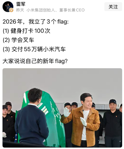 1、雷军2026年的3个flag