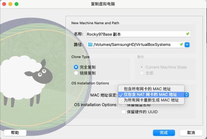 虚拟机复制时只需要注意一点,是否重新初始化网卡的MAC地址
