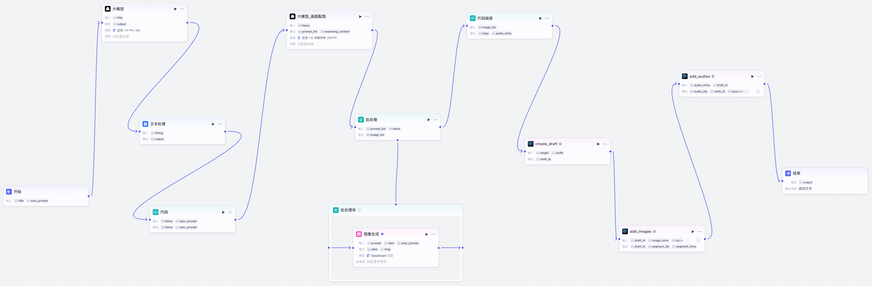 工作流相对复杂,需要用到剪映和米核剪映小助手,个人感觉以后也用不到这个制作视频,这里就不拆解了。